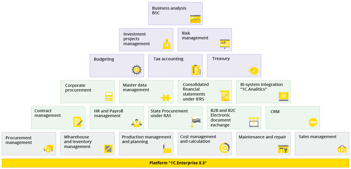 In this regard, companies were forced to begin the transition to domestic ERP products. Most of which choose various configurations of the 1C system.